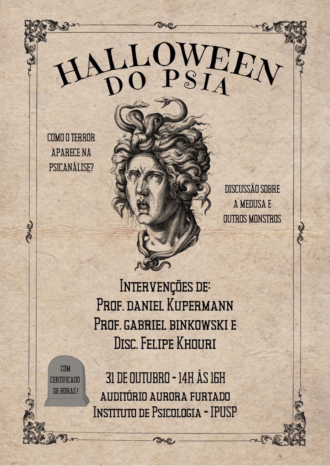Evento Halloween do PSiA: Como o terror aparece na psicanálise? 31/10/2025 - 31/10/2025 14h-16h - Auditório Aurora Furtado - Bloco B LocalAuditório Aurora Furtado - Bloco B Mais informações